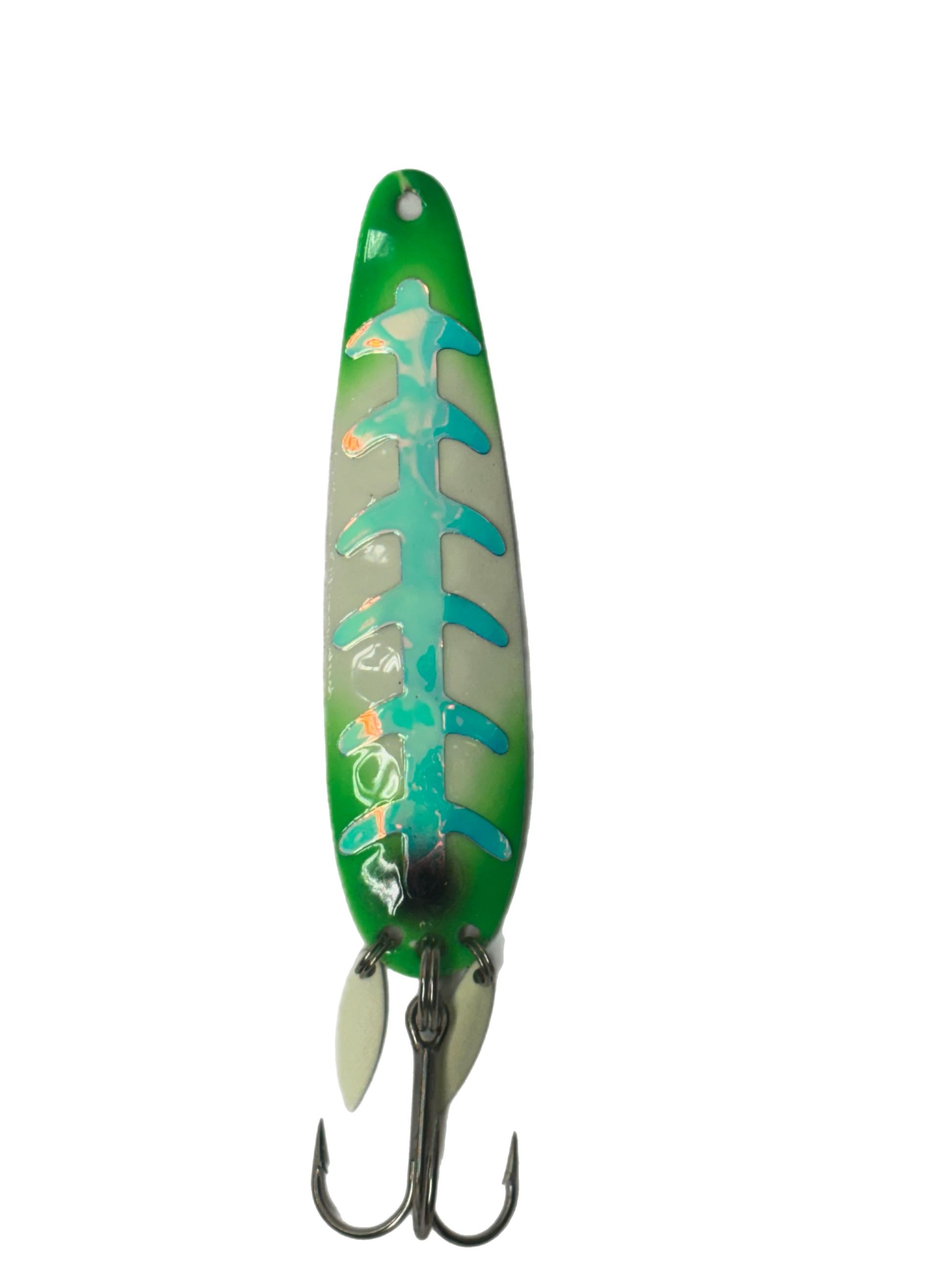 The Carlson rattling spoon series is designed and tested by professional fisherman across the Great Lakes region for the best possible action. The rattling flippers create a visual and audible attraction, combined with the hex pattern and our hand painted ultra glow true UV finish create an irresistible bait fish presentation.